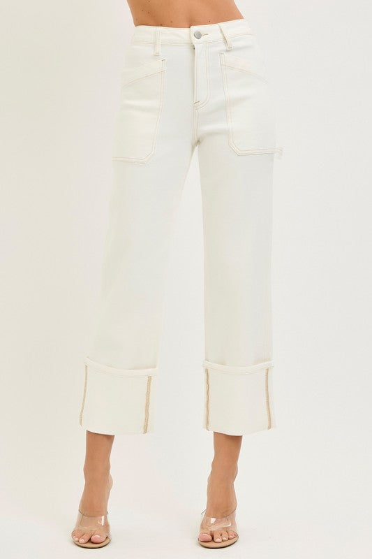 Discover your new favorite staple with our High Rise Straight Cuffed Pants, boasting a super-flattering elevated waist and distinctive patch pocket details that add a touch of modern flair. The versatile turn-up cuff can be released for a longer line or styled for a chic ankle-grazing look, perfect for showing off your favorite boots or loafers this winter. Effortlessly transition from a cozy brunch to an evening out with these must-have trousers.