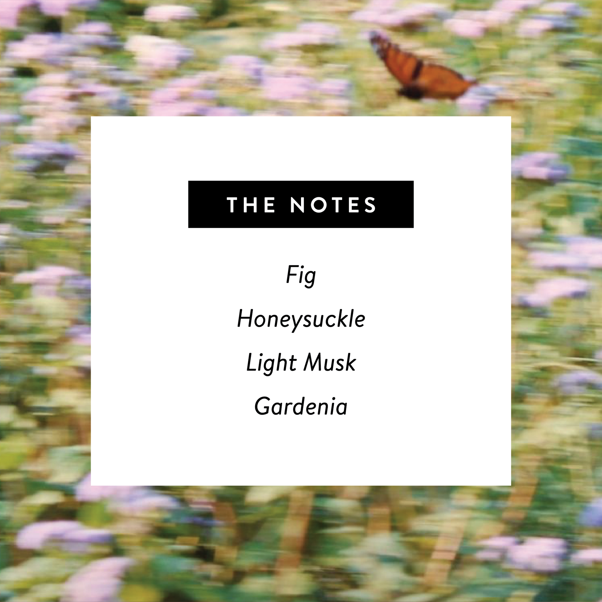Like a late lunch with the girlies on the first warm day of spring—when butterflies skim the garden and the air is drenched in honeysuckle, fig, and fresh blooms. It’s sunlight on petals, soft and fleeting, but unforgettable. Fresh, airy, and unapologetically floral (without being powdery or stuffy).