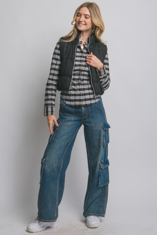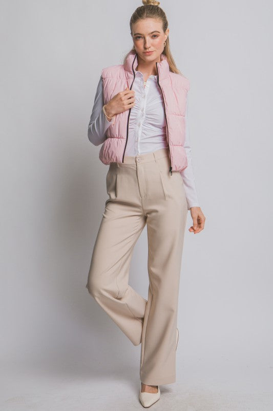 Embrace the season's trendiest silhouette with our lightweight cropped outerwear, featuring a chic stand collar and handy side pockets perfect for your essentials. Its modern, waistline-skimming length beautifully complements high-waisted jeans or dresses, offering a stylish layer without the bulk for milder October days. This piece is your go-to for adding a fashionable and fresh touch to any autumn outfit.